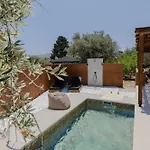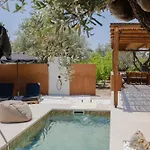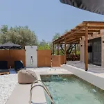 Η Casa Napais Earth Retreat Βίλα Αρχάγγελος διαθέτει βεράντα με πισίνα.
